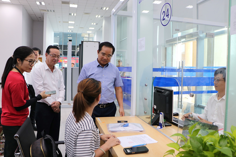Ủy viên Trung ương Đảng, Chủ tịch Ủy ban nhân dân Thành phố Hồ Chí Minh Nguyễn Văn Được cùng đoàn công tác khảo sát, kiểm tra thực tế tại Trung tâm phục vụ hành chính công phường Bình Dương _Ảnh: TTXVN